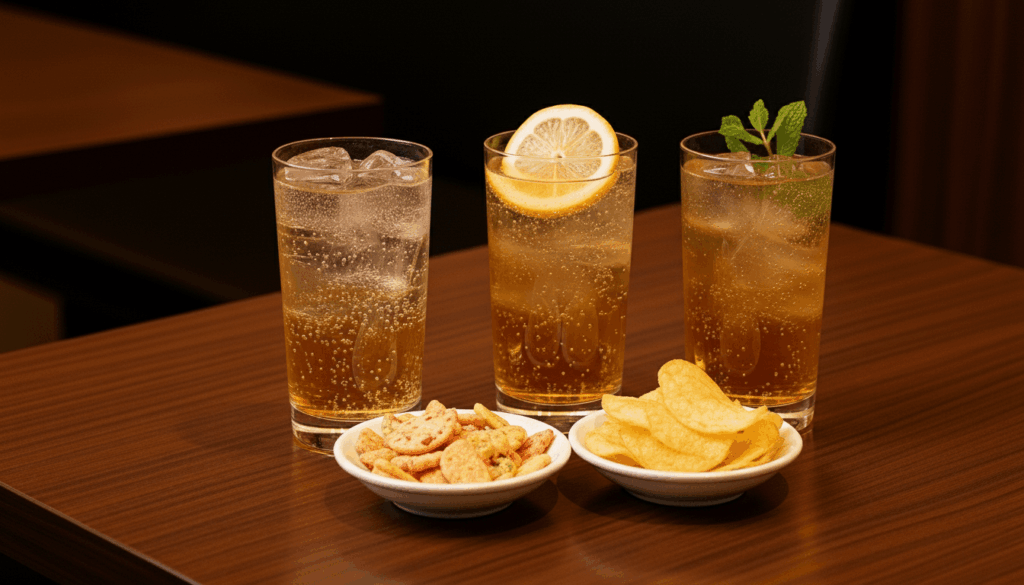 ハイボールはおつまみを選ぶ守備範囲が広いお酒です。「迷ったら唐揚げ・ナッツ・チーズ・生ハム」を基本に、飲むハイボールのタイプに合わせてもう一歩踏み込んでみてください。